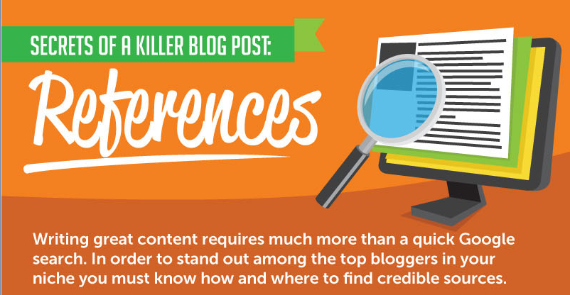 Are you looking to sharpen your blog writing skills? Today’s infographic, “Secrets of a Killer Blog Post”, highlights a key component of strengthening the credibility of your blog posts – references! Yes, we’re going back to high school with this one, folks. All the key components for that senior research paper can also be used as a strategy for firming up your blog posts.